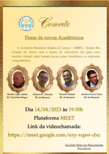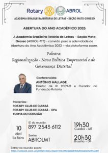 A Academia Brasileira Rotária de Letras – Seção Mato Grosso (ABROL-MT) – convida para a solenidade de Abertura do Ano Acadêmico 2023 – via plataforma Zoom.