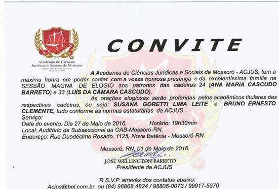 CONVITE ACJUS (academia de ciências jurídicas e sociais de Mossoró)