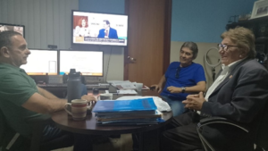 ACJUS – membros da ACJUS em visita ao acadêmico Petronilho Hemetério Filho (89 anos) na companhia do Dr. Manoel Mário de Oliveira. Petronilo se encontra no apartamento da sua filha, renomada médica endocrinologista, Dr. Patrícia Jovelina. Manoel Mário foi visitar o colega de INPS (INSS), quando atualizaram a conversar que estava acumulada desde 1983. Foi um momento de muito aprendizado com a entrega de livros de ambos. Mossoró, Patu e o RN foi passado em revista.