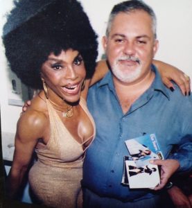 Outras duas cantoras autografaram meus CDs no Alberto Maranhão. Tânia Alves, a qual sorriu muito quando eu me declarei seu fã nos boleros e na televisão: “você foi a Maria Bonita mais bonita de Lampião”. O amigo fotógrafo Evaldo Filho estava bem perto desse memorável encontro, clicou logo o momento para a minha posteridade musical. E a outra foi a grandiosa e consagrada Elza Soares. Negra linda de corpo e alma. Apesar da idade, cantou e dançou tal qual uma adolescente seus antigos sucessos, entre eles, os clássicos: ‘Maria vai com as outras; Se acaso você chegasse; Mulata Assanhada; Salve a Mocidade; Lata d’água na Cabeça e Marambaia’. Finalizando seu grandioso espetáculo musical, corri para o seu camarim e fui o primeiro e único fã a ser fotografado, pois a cantora sentiu-se mau e teve que ir ao hospital para tomar soro e reanimar-se. Já estava com mais de setenta anos e não uma garota para pular e sambar como nos velhos e bons tempos. Sorriu muito agradecida quando eu lhe disse que tinha a biografia do seu amado Garrincha, muito bem escrita por Ruy Castro e era seu admirador desde a minha adolescência. E ficou comprovada a minha declaração quando teve que autografar vários CDs: “Eu estou vendo que o senhor é um ferrenho apaixonado pela Elza Soares. Disso não duvido!”. E imaginem se eu tivesse levado debaixo do meu braço os Vinis deixados em casa. Outro dia, a vi já sentada cantando no Rolando Boldrin e a cena do nosso encontro me fez até chorar de emoção. O tempo na velhice é muito cruel, principalmente com os famosos e famosas! Nem quero mais voltar a ler o que aconteceu com as famosas cantoras do Rádio do passado, irmãs Batista, Dircinha e Linda.