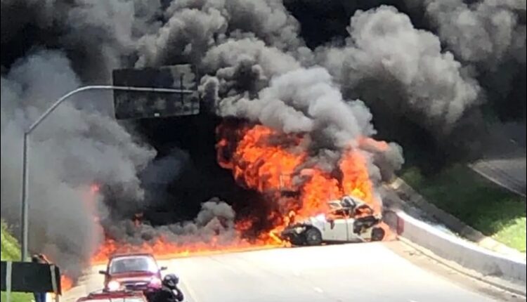 Alguns dos veículos envolvidos nas colisões pegaram fogo, o que levou à interdição total da rodovia. As batidas aconteceram às 12h15 no quilômetro 102,8 da BR-408, segundo a Polícia Rodoviária Federal (PRF).