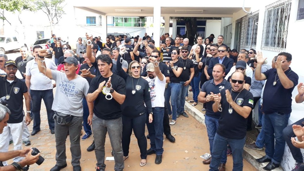 Em protesto contra a decisão do Tribunal de Justiça do RN, que considerou a paralisação da polícia ilegal e determinou a prisão de policiais que incentivem, promovam ou defendam a greve, policiais civis do Rio Grande do Norte se apresentaram algemados na Delegacia Geral de Polícia, em Natal, na manhã desta quarta-feira. A categoria reduziu as atividades desde o dia 20 de dezembro por causa dos salários atrasados e da falta de condições de trabalho.