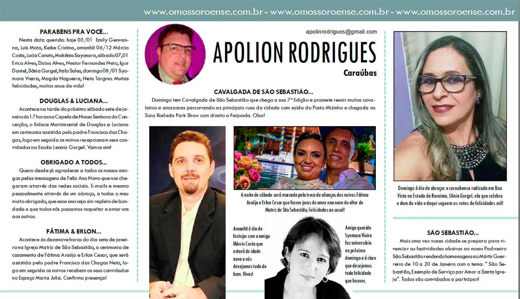 Acontece na tarde do próximo sábado sete de janeiro ás 17 horas na Capela de Nossa Senhora da Conceição, o Enlace Matrimonial de Douglas e Luciana em cerimonia assistida pelo padre Francisco das Chagas, logo em seguida os noivos recepcionam seus convidados na Escola Leonia Gurgel. Vamos sim!