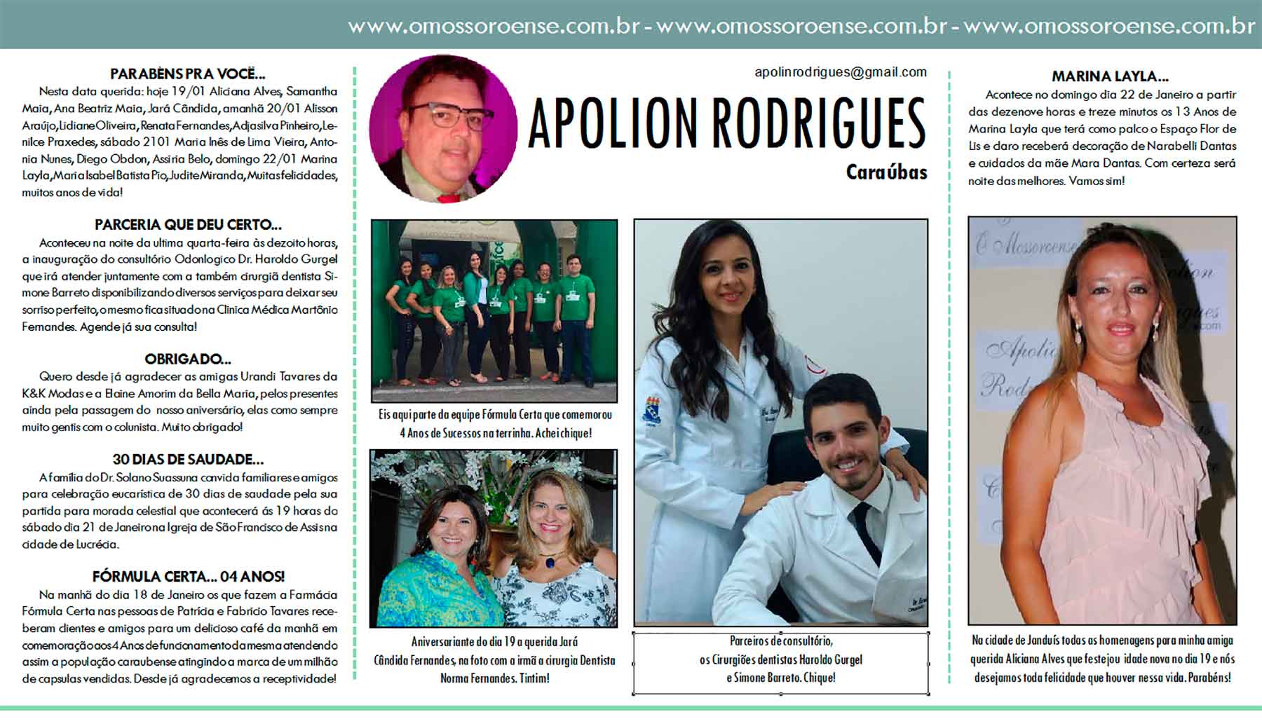 Quero desde já agradecer as amigas Urandi Tavares da K&K Modas e a Elaine Amorim da Bella Maria, pelos presentes ainda pela passagem do nosso aniversário, elas como sempre muito gentis com o colunista. Muito obrigado!