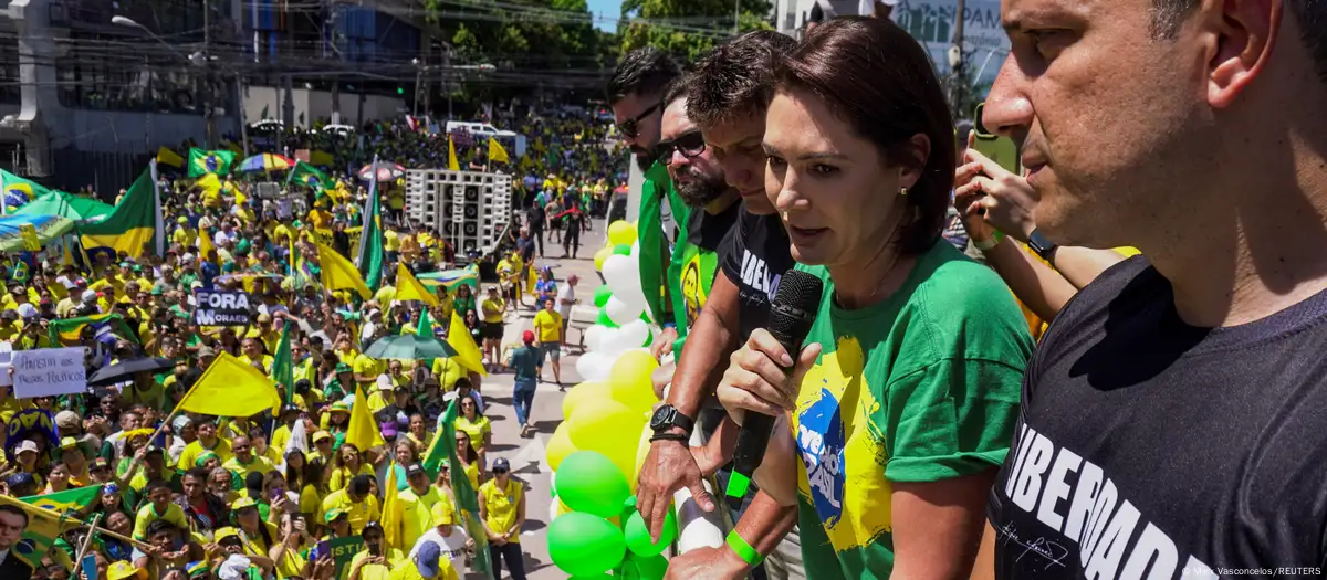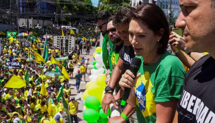 A ex-primeira-dama Michelle Bolsonaro foi escalada para discursar na capital paraense, onde cumpria agenda partidária, e pediu fim da censura no Brasil.