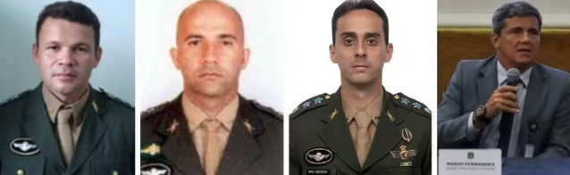 - quatro militares do Exército ligados às forças especiais, os chamados “kids pretos”: o general de brigada Mario Fernandes (na reserva), o tenente-coronel Helio Ferreira Lima, o major Rodrigo Bezerra Azevedo e o major Rafael Martins de Oliveira.