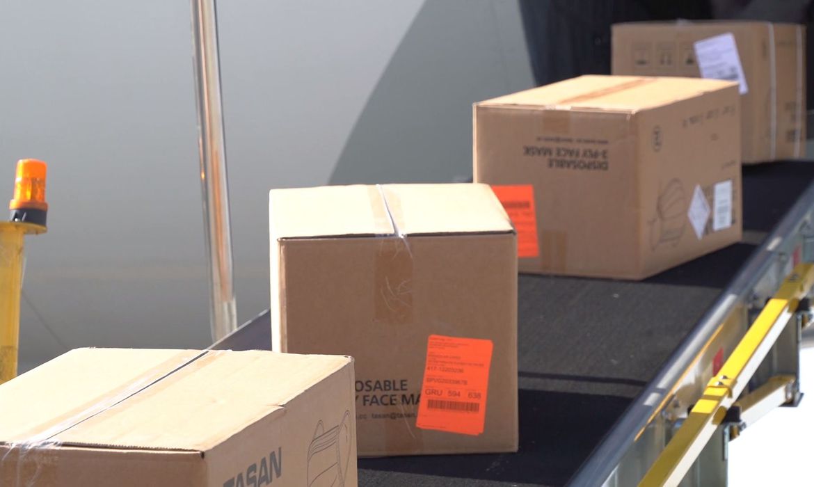O Brasil recebeu nesta quinta-feira (21), em Guarulhos (SP), o sétimo voo com máscaras para auxiliar o trabalho de combate à covid-19. Foi o primeiro voo trazendo máscaras do tipo N95, mais indicado a profissionais expostos a ambientes contaminados. O carregamento de hoje tem 4,5 milhões de unidades do produto.