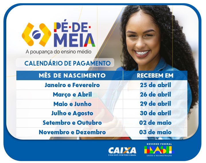 A CAIXA inicia, nesta quinta-feira 25, o pagamento da primeira parcela do incentivo frequência do Programa Pé-de-Meia, do Governo Federal. No valor de R$ 200, a parcela será creditada em conta Poupança Social Digital, aberta automaticamente pela CAIXA em nome dos estudantes, e os valores podem ser movimentados pelo aplicativo CAIXA Tem.