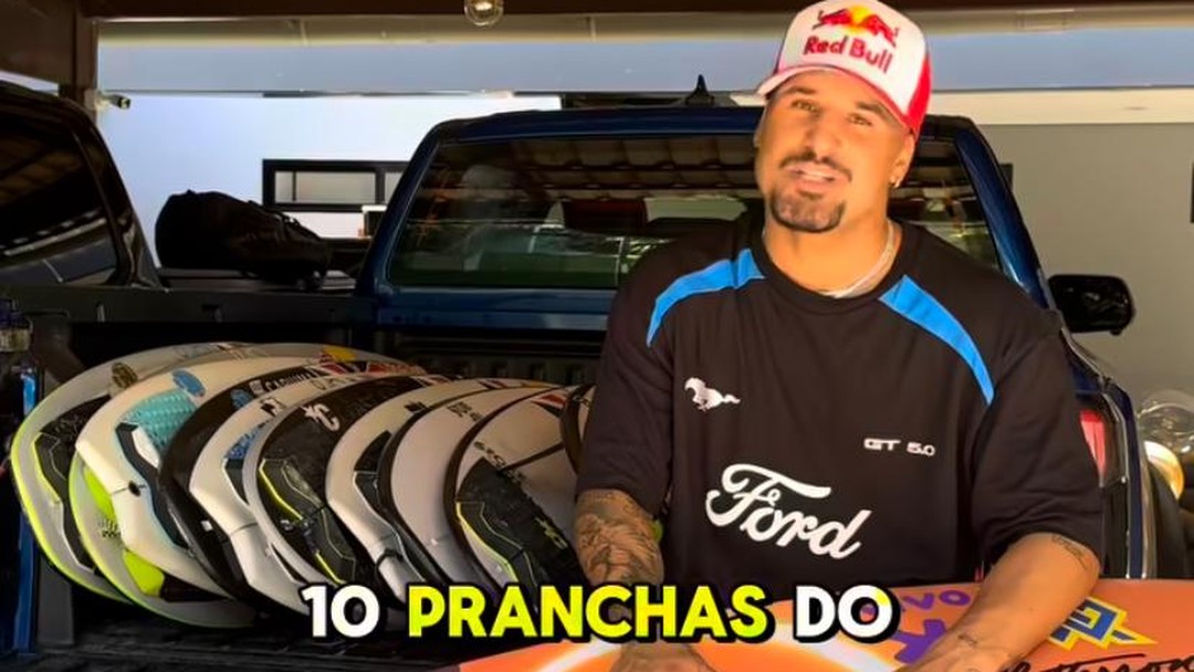 As pranchas foram utilizadas por ele em competições pelo mundo. Italo destacou que o valor arrecadado será revertido para as pessoas atingidas pelas enchentes no Rio Grande do Sul.