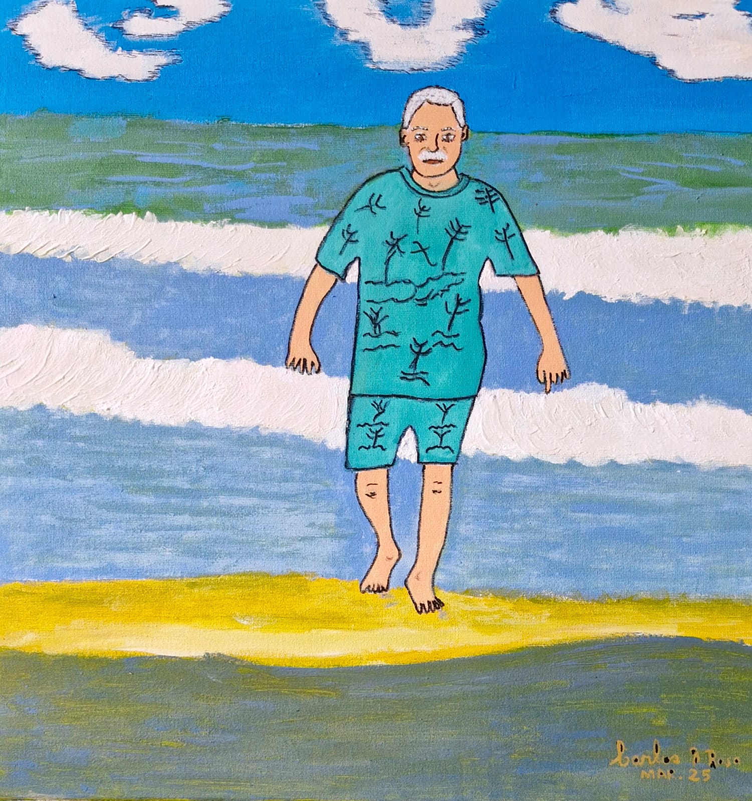 Carlos Gomes (Natal, 10.09.1939) é professor aposentado do curso de Direito da UFRN, sendo professor emérito. Após a perda da esposa, para se evadir da saudade e da solidão, bem como de um trabalho de luto comprido demais, que se instalara no seu espírito, começa a pintar. Consabido é que o tempo do nojo ou do luto tem uma expectativa de duração, não há consenso, mas quando passa mais de um tempo de se erguer e opta por prosseguir pela vida, sujeita a outras atribulações, instala-se uma quietude interior, porém domada pelos barbantes da razão, pela sabedoria, pela conversa com outros que passaram pela mesma situação, assim como perdoar a pessoa querida que se foi, mas também se perdoar com relação a ela (foi melhor assim? estava sofrendo em demasia? O lídimo amor libera o enfermo para que descanse na eternidade).