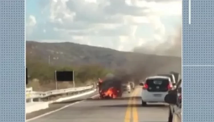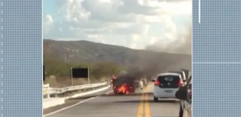 Um carro bateu em uma ponte, capotou e logo em seguida pegou fogo na BR-427, no trecho que liga as cidades de Currais Novos e Acari, na Região Seridó do Rio Grande do Norte, na tarde deste sábado (10). O veículo ficou destruído.