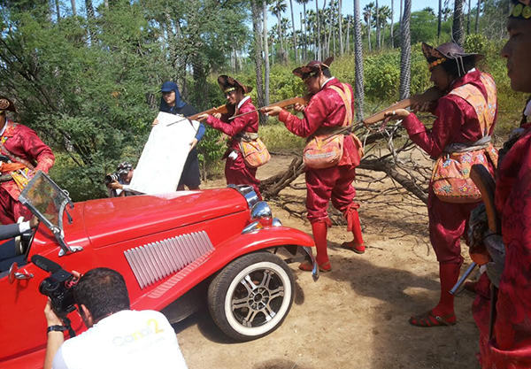 “Quando dirigimos pela primeira vez a cena da prisão do coronel tudo acontecia no próprio palco, usando um praticável com volante para simular um automóvel. Tudo feito em tempo real da encenação. Mas ao longo do tempo percebemos a necessidade de evoluir e também de atender uma exigência dos espectadores que esperam sempre algo novo a cada edição. E estudando a possibilidade da linguagem do áudio visual puxamos os atores para essa linguagem de cinema que é feita externamente e que dialoga com a narrativa do palco”, explicou o diretor.
