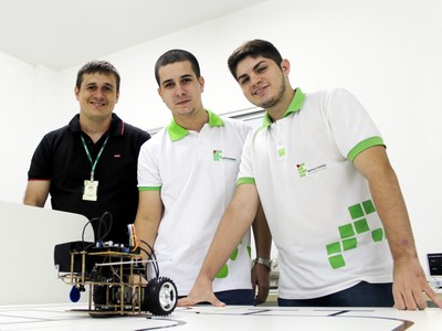 Os alunos do Campus Pau dos Ferros do IFRN, Hawllysson Gardel, Bruna Soares e Geraldo Filho, do curso técnico integrado em Informática, sob orientação do Professor Bonfim Aquino e coorientação do Professor Michel Santana, terão o seu projeto robótico apresentado no “Challenge Robotique 2017”, na França. A conquista de credenciamento ao evento, que será realizado no Lycée Touchard Washington, na cidade francesa de Le Mans, foi fruto da premiação de 1º lugar na 2ª Olimpíada de Robótica do IFRN”, promovida durante a Semana de Ciência, Tecnologia e Extensão (Secitex), realizada em novembro passado, no Campus Parnamirim. Daqui enviamos os nossos parabéns.