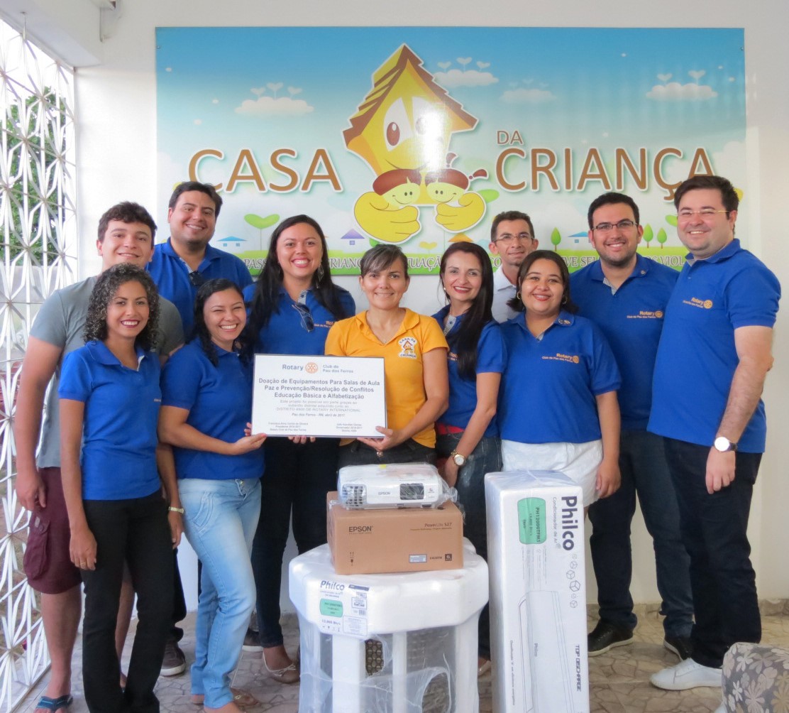 Os integrantes do Rotary Club de Pau dos Ferros fizeram uma visita à Casa da Criança para efetivar a doação de um data show e um ar condicionado. A entrega dos itens foi fruto de um projeto inscrito pelo Clube, na gestão 2016-2017 do Distrito 4.500, para concorrer aos subsídios distritais da Fundação Rotária. A responsável pela Casa da Criança, Angela Batista, recebeu nossos associados, apresentou as dependências da instituição e agradeceu pelas doações.