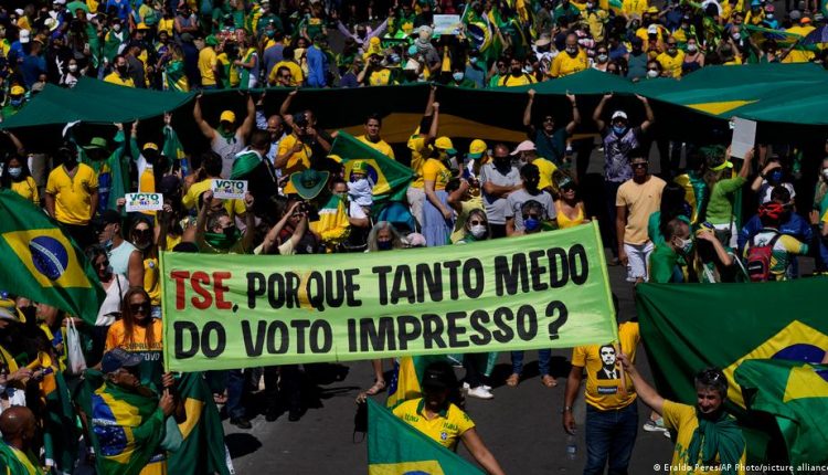 Críticos apontam que Bolsonaro, assim como fez o ex-presidente Donald Trump nos Estados Unidos, semeia dúvidas sobre o processo eleitoral para abrir o caminho para não aceitar o resultado do pleito presidencial do ano que vem caso seja derrotado.