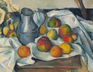 (Pintura “Chaleira e Frutas”, de Paul Cézanne.)