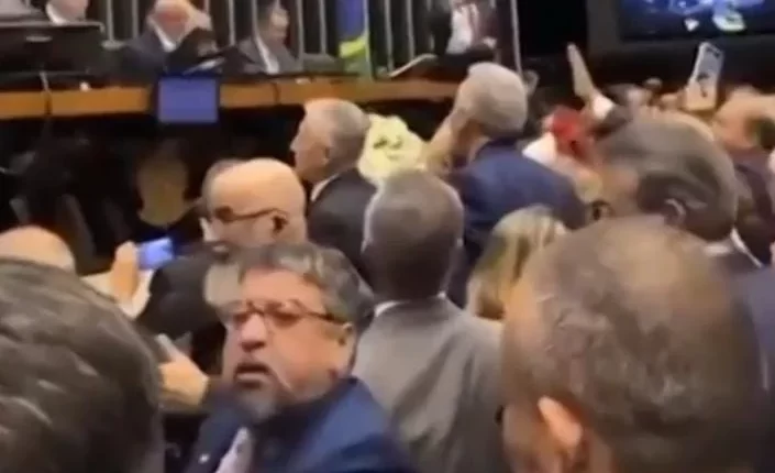 Washington Quaquá (PT-RJ) estava fazendo uma filmagem no plenário, começou a discutir com Messias Donato (Republicanos-ES) e desferiu o golpe. Ele disse que reagiu a ofensas contra o presidente Lula.
