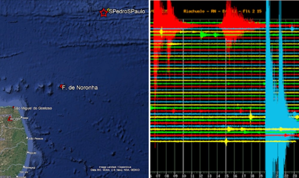 O primeiro tremor, de magnitude 6.1 foi registrado às 21h34 da quinta-feira, a aproximadamente 42 km do arquipélago São Pedro e São Paulo e a 952 km de Natal.