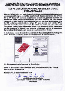 Editais EDITAL DE CONVOCAÇÃO DA ASSEMBLEIA GERAL EXTRAORDINÁRIA On 8 de novembro de 2024 Compartilhe… Facebook Whatsapp Twitter Linkedin Email
