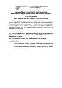 Editais EDITAL DE CONVOCAÇÃO PARA ASSEMBLEIA GERAL EXTRAORDINÁRIA Last updated 28 de novembro de 2024 Compartilhe… Facebook Whatsapp Twitter Linkedin Email