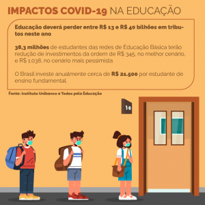 Segundo levantamento do Instituto Unibanco e Todos Pela Educação, em parceria com o Conselho Nacional dos Secretários de Educação, as redes estaduais e municipais de ensino devem perder entre R$ 13 bilhões e R$ 40 bilhões em tributos neste ano. O último relatório da série Covid-19: Impacto Fiscal na Educação Básica leva em consideração os aspectos econômicos da pandemia do novo coronavírus a partir de um mapeamento de projeções tributárias e análise da base de dados do Tesouro Nacional.