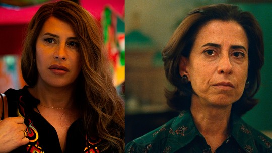 Karla Sofía Gascón, em ‘Emilia Pérez’ e Fernanda Torres, em “Ainda Estou aqui” — Foto: Divulgação