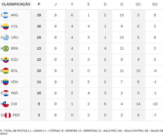 O resultado colocou o país na quarta posição da tabela, mas apenas três pontos do Paraguai, primeira seleção fora da zona de classificação para a próxima Copa.