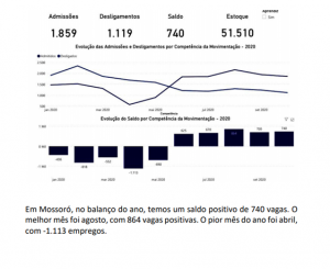 Michelson Frota, presidente do Sindilojas Mossoró, destaca que o comércio aqueceu em virtude do auxílio emergencial e diversos empregos informais que surgiram ou se fortaleceram neste período. A economia do Rio Grande do Norte também mostrou bons resultados no último semestre, por cinco meses apresentou saldo positivo no mercado formal de empregos, principalmente em outubro, em que foram +4.763 vagas com carteira assinada, como aponta dados do Ministério da Economia – CAGED.