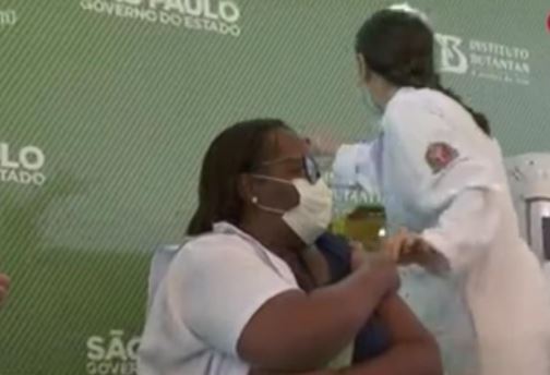 Enfermeira de SP é a primeira pessoa vacinada no Brasil contra a Covid-19