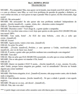 Em outro trecho, Moabe relata o risco da operação e menciona a experiência anterior: diz que guardou “quase dois contos” (cerca de R$ 2 milhões) no apartamento de Aldo, afirmando ter ficado extremamente apreensivo com a situação. Ele ainda comenta que pessoas que movimentam valores elevados, na casa dos “vinte ou trinta milhões”, costumam manter dinheiro guardado e não repassar a terceiros.