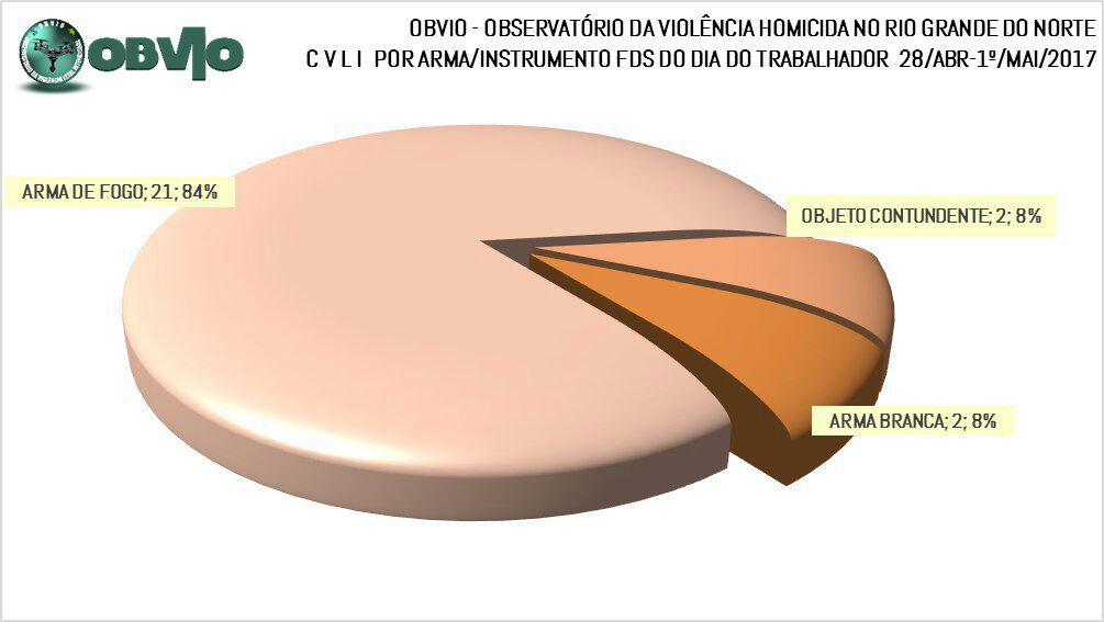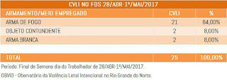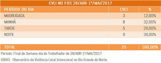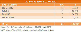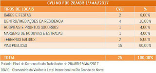 “Feriadão” do Dia Trabalho fechou com 25 CVLIs no RN aponta OBVIO