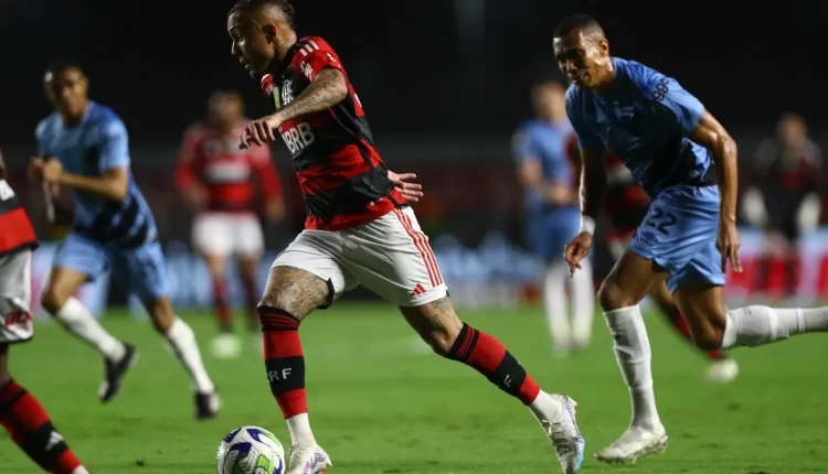 Pouco participativo no ataque, Gabigol complicou ainda mais a vida do Flamengo ao 19, ao deixar o braço no rosto de Cuello. Inicialmente, o árbitro deu cartão amarelo, mas foi chamado ao VAR e expulsou o camisa 10 do Flamengo. No primeiro tempo, Gabi já havia se envolvido em lance parecido.
