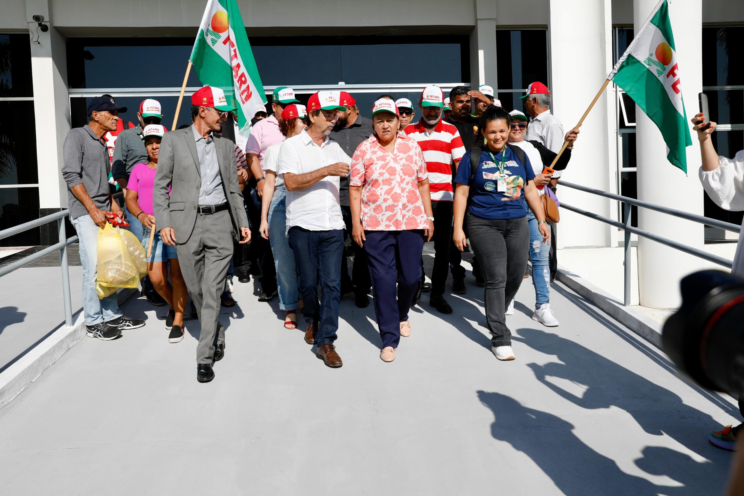 Após uma reunião com representantes de entidades, que apresentaram uma série de reivindicações, a governadora Fátima Bezerra desceu a rampa da Governadoria do Estado para responder à mobilização social.