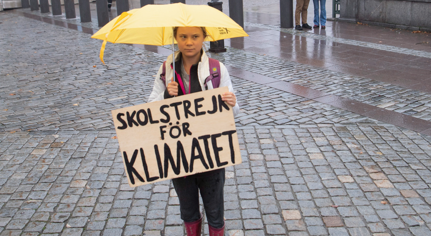 “A negação da crise climática e ecológica é tão profunda que já quase ninguém se apercebe. Como ninguém trata esta crise como uma crise, os alertas continuam a afogar-se numa maré constante de greenwash [anglicismo que siginifica ‘banho verde’, referindo-se à injustificada apropriação de virtudes ambientalistas] e nos temas diários das notícias nos media”, começou por escrever, numa crónica para o Guardian, Greta Thunberg.
