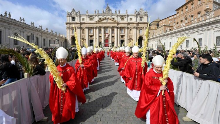 Em uma Praça de São Pedro lotada, cerca de 60 mil fiéis, sob um céu em que os raios de sol se alternavam com as nuvens, a celebração do Domingo de Ramos, presidida pelo Papa Francisco, foi aberta com a comemoração da entrada do Senhor em Jerusalém, da qual se lê o relato do evangelista Marcos, que precedeu a celebração da missa. O Papa abençoou e aspergiu com água benta os ramos de oliveira, o símbolo deste domingo (24), que os presentes seguravam na mão. Em seguida, foi realizada uma procissão com mais de 400 pessoas que levavam os ramos, que se dirigiram do centro da praça para o sagrado. Os cardeais, bispos e sacerdotes concelebrantes tomaram seus lugares ao lado do altar.