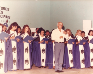 Professor Josafá Inácio da Costa com o coral do Conservatório de Música Dalva Stela, pertencente a antiga FURRN – Arquivo da UERN.