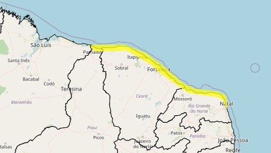 De acordo com o alerta, o fenômeno, de perigo potencial, pode movimentar dunas de areia e atingir construções na orla potiguar.