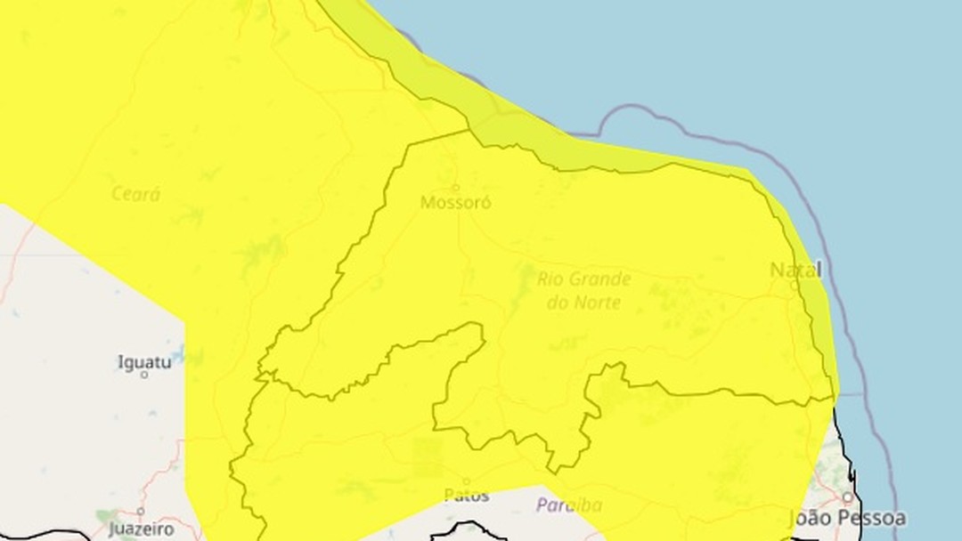 Inmet emite alerta de acumulado de chuvas para todo o Rio Grande do Norte — Foto: Reprodução/Inmet
