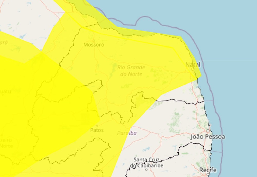 O Instituto Nacional de Meteorologia (Inmet) emitiu três alertas amarelos relacionados à possibilidade de vendaval, ventos costeiros e baixa umidade em cidades do Rio Grande do Norte, neste sábado (7).