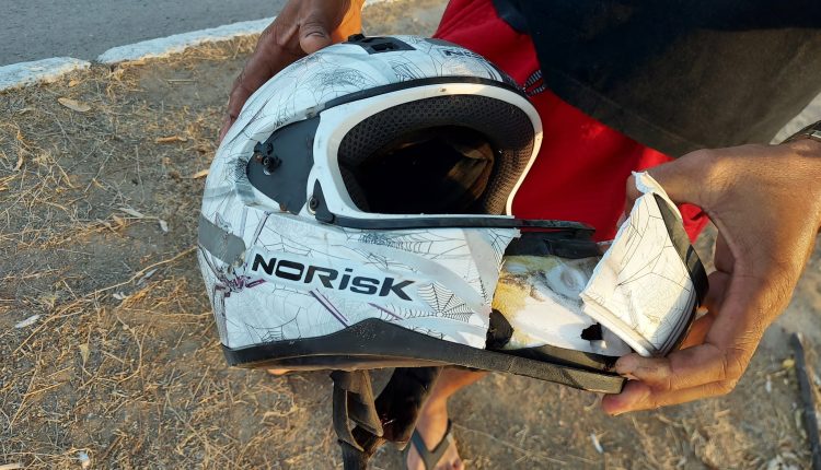 Com a queda, o capacete do jovem foi partido, tamanho o impacto. Luiz ainda foi conduzido ao Hospital Regional Tarcísio Maia (HRTM) por uma equipe BRAVO do SAMU com Suporte Básico e apoio da ALFA com Suporte Avançado, mas não resistiu.