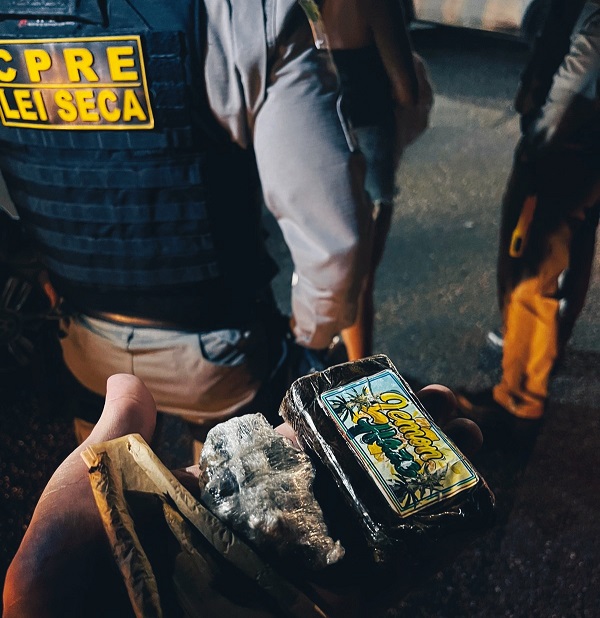 Com um casal a bordo de automóvel foi encontrado aproximadamente 250g (duzentos e cinquenta gramas) de maconha, sendo autuados por tráfico de drogas e sua associação.