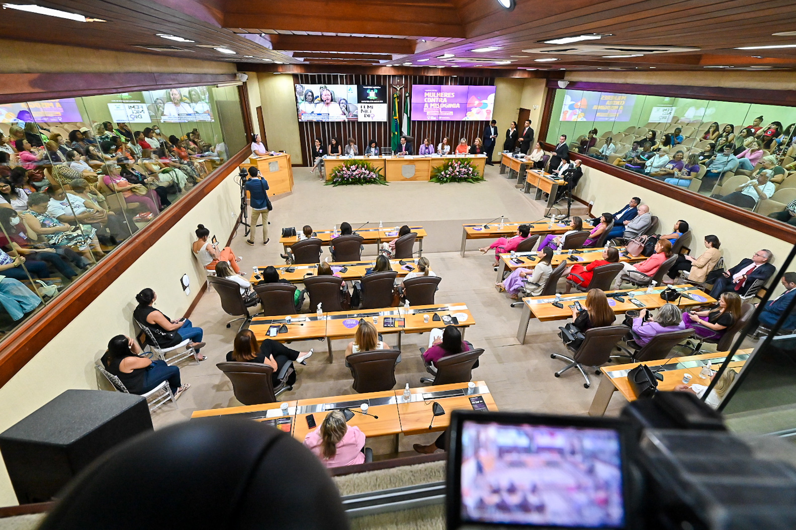 A tarde desta quarta-feira (3) foi repleta de reflexões, na Assembleia Legislativa, acerca do combate à violência contras as mulheres no Estado e no País. Os debates aconteceram durante a audiência pública de lançamento da “Marcha Nacional das Mulheres contra a misoginia”, bem como de conclusão da campanha institucional “Feminicídio tem que acabar”, com o tema “Antes de acontecer, o feminicídio dá sinais”.