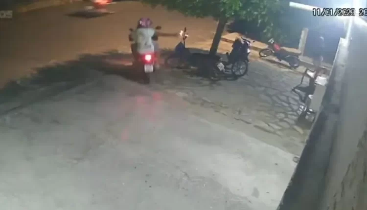 O caso aconteceu na calçada de uma casa no bairro Bom Jardim. As imagens mostram uma dupla de moto se aproximando de três pessoas sentadas no local. O homem na garupa sacou uma arma e disparou contra as vítimas. Uma delas foi atingida.