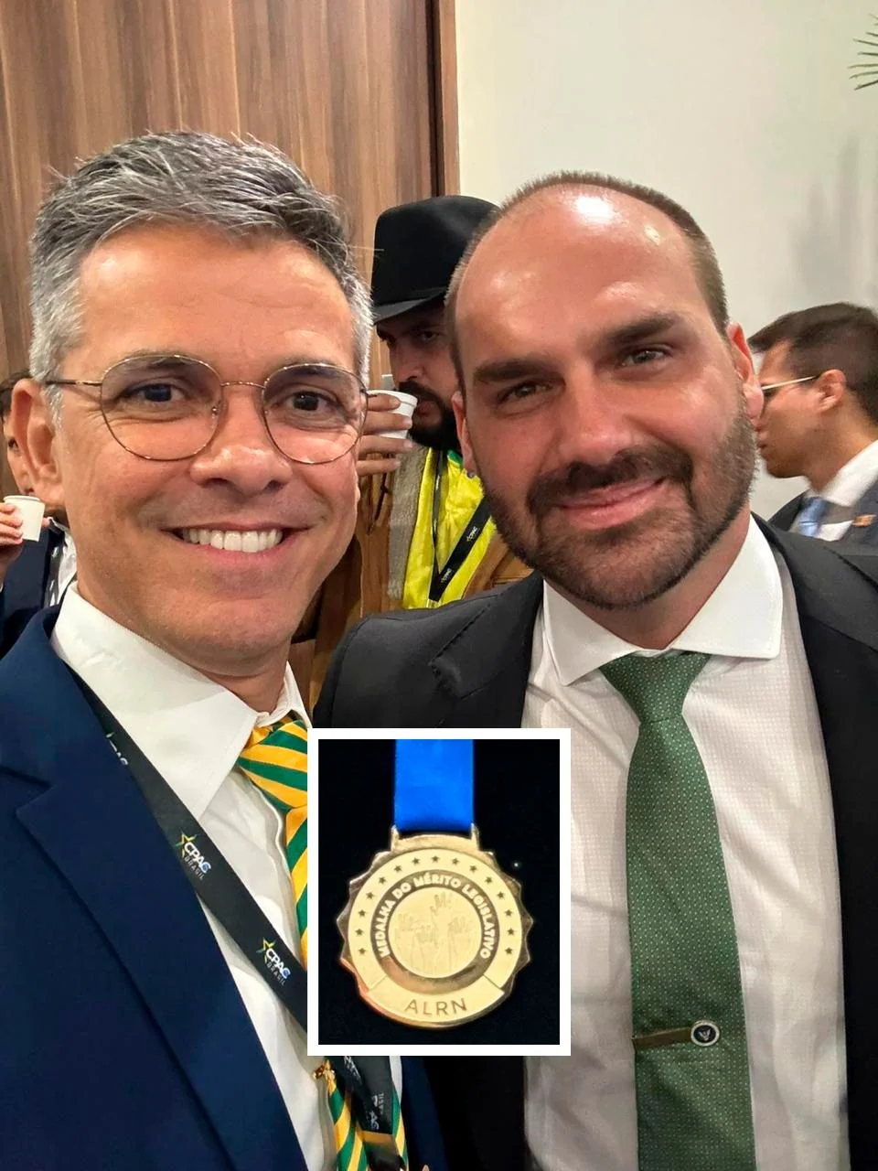 O deputado estadual Coronel Azevedo indicou o nome do deputado federal Eduardo Bolsonaro para receber a medalha do mérito de Direitos Humanos concedida pela Assembleia Legislativa do Rio Grande do Norte em sessão solene na sexta-feira.
