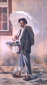 (Pintura “O Mascate”, de Firmino Monteiro.)