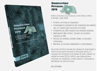 O Observatório da Violência do RN disponibiliza, inteiramente grátis, o Mapa da Violência Letal Intencional no Rio Grande do Norte, com organização e análise dos coordenadores do OBVIO, Ivenio Hermes e Thadeu Brandão, além de artigos de outros colaboradores. O mesmo é um estudo científico com análises criminais de complexidade e estatística das mortes matadas da população nascida, de passagem e/ou residente no Rio Grande do Norte, durante um período de 4 anos (2012 a 2015), visando conscientizar a sociedade civil organizada, o poder público e a população.