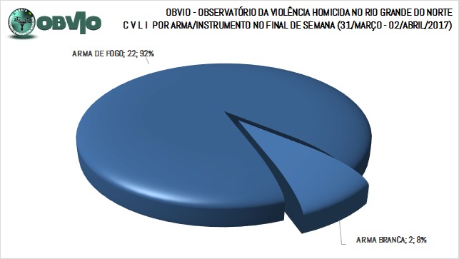 Quanto aos instrumentos letais utilizados para a execução dos CVLIs, o uso de arma de fogo mantêm a predominância com 92% dos casos (22 do total), Também houveram 02 mortes violentas com uso de arma branca (8% do total).