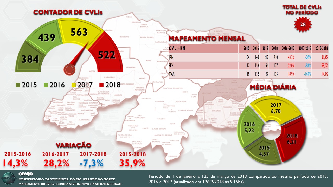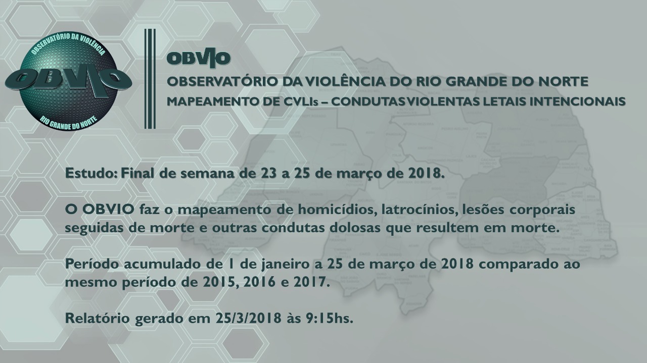 OBVIO RN registra 28 mortes matadas no FDS 23-25 de março de 2018