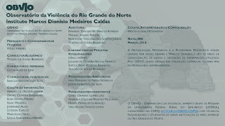 O Observatório da Violência do RN, Instituto Marcos Medeiros Dionísio Caldas, Grupo de Pesquisa da UFERSA (Universidade Federal Rural do Semi-Àrido), divulga mais um conjunto de dados sobre a violência homicida potiguar.