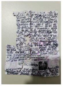A advogada foi investigada pelo MPRN no período entre janeiro de 2021 e junho de 2022. Em 12 de julho de 2021, na penitenciária estadual Rogério Coutinho, Wanessa Jesus foi flagrada trocando ‘catataus’ (bilhetes) com Carlos Alessandro. No bilhete apreendido, o detento repassava ordens para os faccionados libertos de sua ‘quebrada’ (local onde domina).